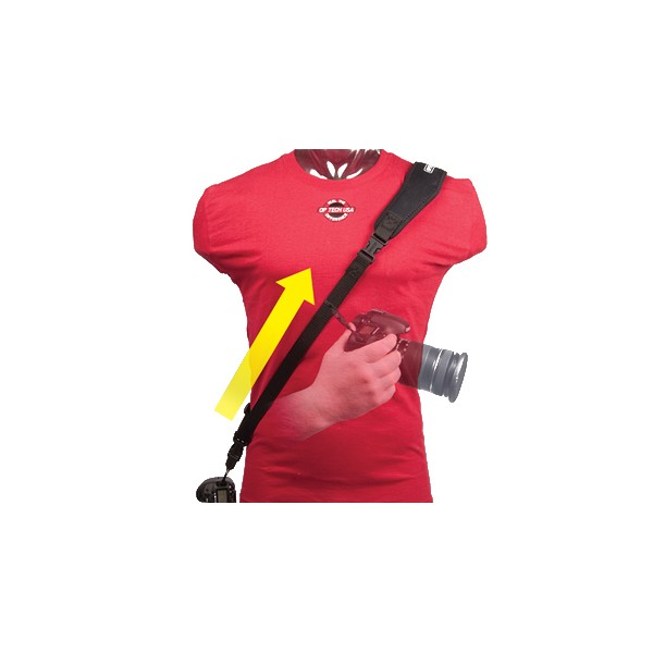 Permettent aux appareils photo ou jumelles de glisser librement le long de la sangle pour un ajustement rapide. Longueur réglable de 58,4 à 91,4 cm.