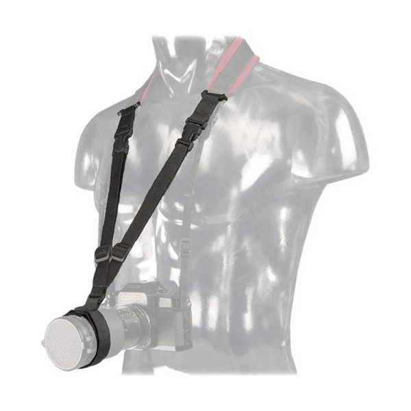 Conçu pour accueillir des objectifs jusqu’à 15,24 cm de diamètre, ce support offre un maintien supplémentaire rapide et facile. Les bretelles réglables avec pinces robustes se fixent solidement à la sangle, assurant un support fiable.