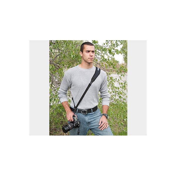 La courroie offre un accès rapide à votre appareil photo ou jumelles. Votre équipement se bloque en toute sécurité à vos côtés et vous pourrez faire glisser votre équipement rapidement pour réaliser des prises de vues.