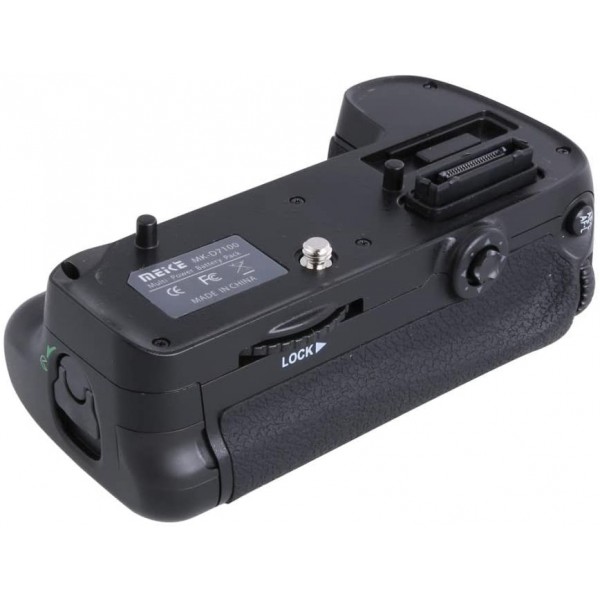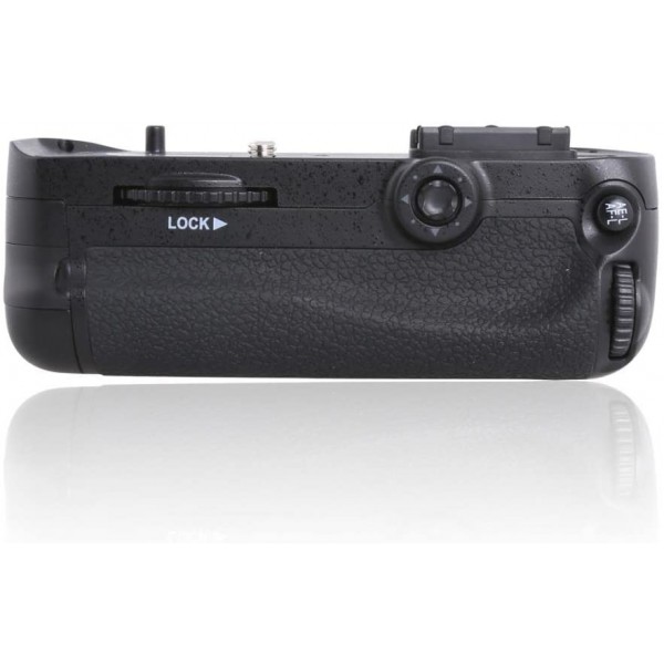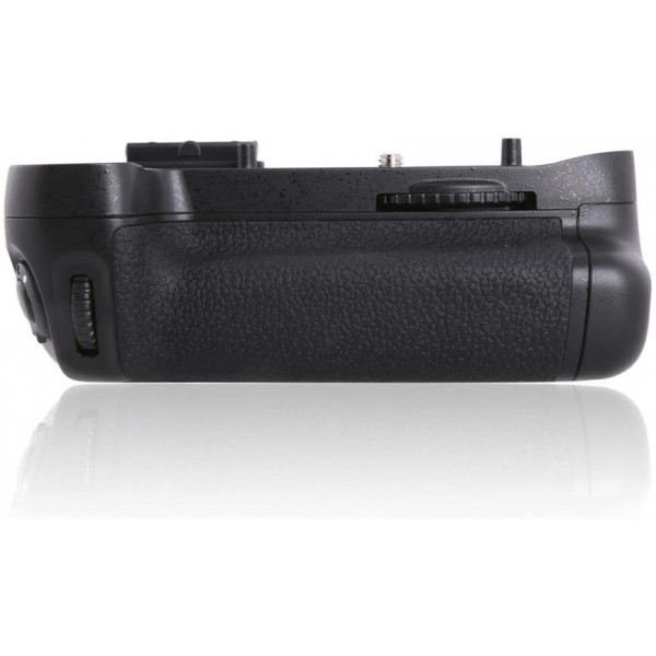 Le grip batterie est équipé d'un déclencheur à poignée verticale, d'une molette principale, d'un bouton de verrouillage AE / verrouillage FE / d'index / de réduction, de sélection AF / bouton d'agrandissement, d'un bouton de compensation d'ouverture / d'exposition, de vis de fixation pour trépied 1/4 ".