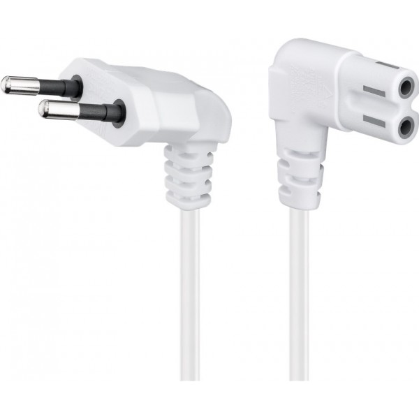 Câble de raccordement Fiche Euro coudée des deux côtés, 2m, blanc