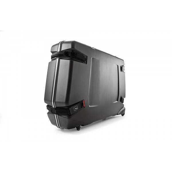 La bike.case 2.0 dispose d'aménagements intérieurs complets qui accueille solidement chaque pièce du vélo et est facile à manœuvrer grâce à ses quatre roues à roulement doux.