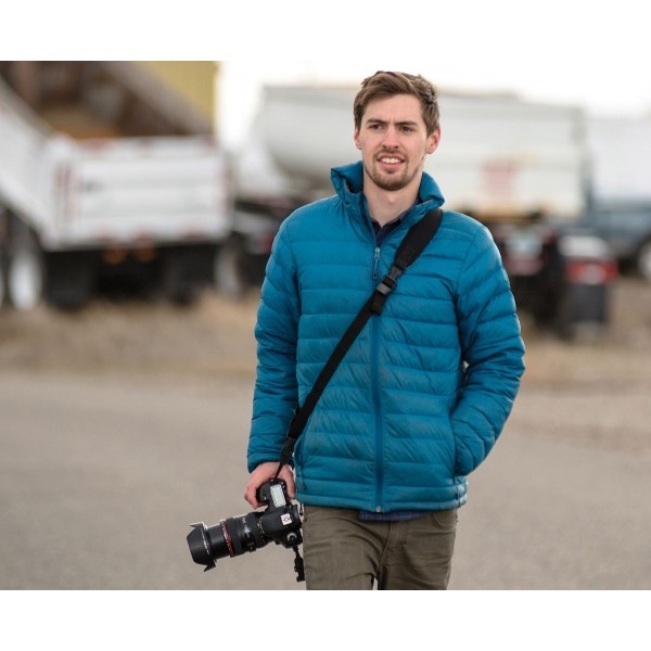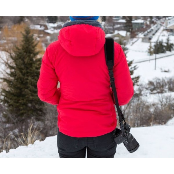 Lors de l'utilisation de la version sling, la fonction de réglage rapide permet de raccourcir ou d'allonger instantanément la longueur de la sangle. C'est idéal pour la randonnée, car la caméra peut être rapprochée du corps pour plus de sécurité.