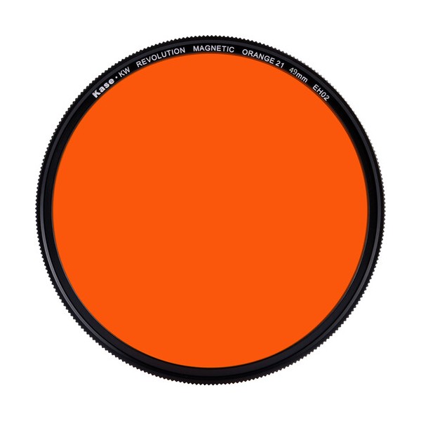 Ce filtre orange Kase Wolverine Revolution N&B avec adaptateur magnétique peut être utilisé pour augmenter le contraste de l'image dans les applications de photographie en noir et blanc.