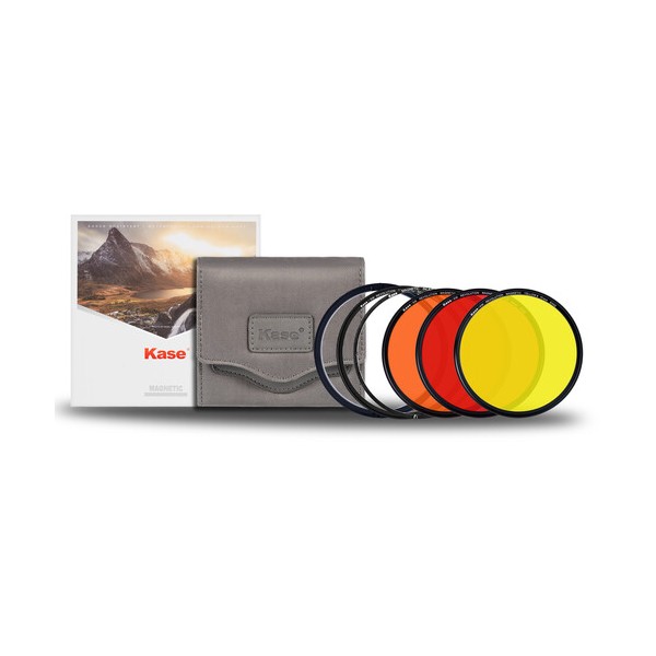 Le kit de filtres 3 en 1 Kase Wolverine Revolution B&W de 49 combine les filtres jaune n° 8, orange n° 21 et rouge n° 25 avec des adaptateurs magnétiques à visser et à incruster, un outil d'installation et de retrait et un étui à filtre à sept poches.