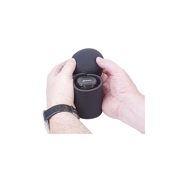 Etui en néoprène pour protéger vos objectifs, convertisseurs, adaptateurs ou autre, avec système de fermeture rabattable qui reste attachée au corps principal.