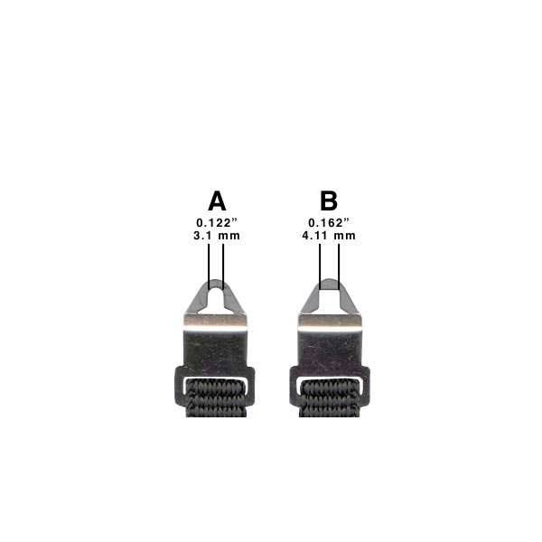Equipés d’un clip en acier inoxydable avec verrouillage unique pour une fixation solide. Longueur réglable de 25,4 à 38,1 cm de chaque côté. Les raccords rapides se clipsent pour former une poignée compacte.