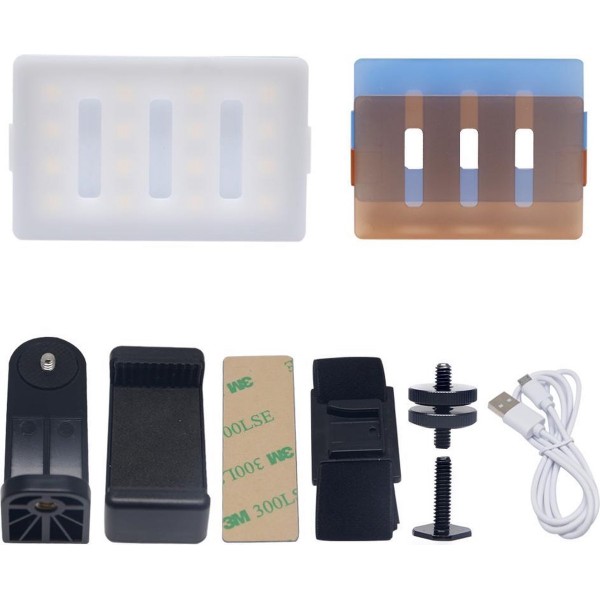 Vous pouvez facilement fixer la lampe à un appareil photo ou à un support de téléphone. Un support de téléphone est également inclus. De plus, l'ensemble comprend une dragonne et un aimant adhésif. Vous pouvez charger avec le câble Micro USB fourni.