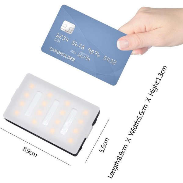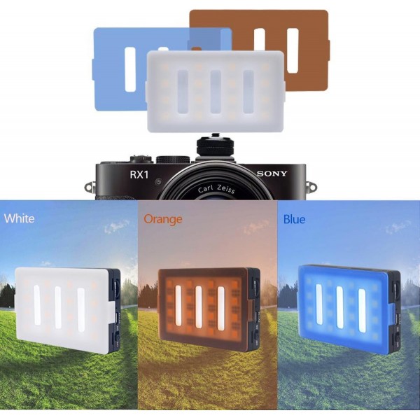 La température de couleur des LED est de 5500K. Vous pouvez modifier la température de couleur en basculant entre les trois filtres amovibles: blanc (diffuseur inclus), bleu ou orange. La lampe est à peine plus grosse qu'une carte bancaire, elle tient donc facilement dans votre poche.