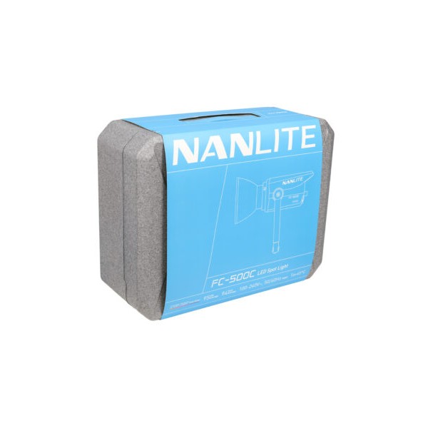 Le FC500C est un luminaire compact et élégant, alimenté sur secteur, qui peut également fonctionner avec des piles à monture en V (en option) en association avec le contrôleur d'alimentation FC disponible séparément. Grâce à son boîtier supérieur innovant en forme d'aile, le FC500C se distingue des autres luminaires. Il convient de noter qu'il s'agit du projecteur RGBW le plus lumineux de Nanlite. Offrant une puissance lumineuse impressionnante, il garantit une reproduction fidèle des couleurs avec un IRC de 95 et un TLCI de 94. Il offre des fonctionnalités avancées avec une commande intuitive intégrée et une télécommande.