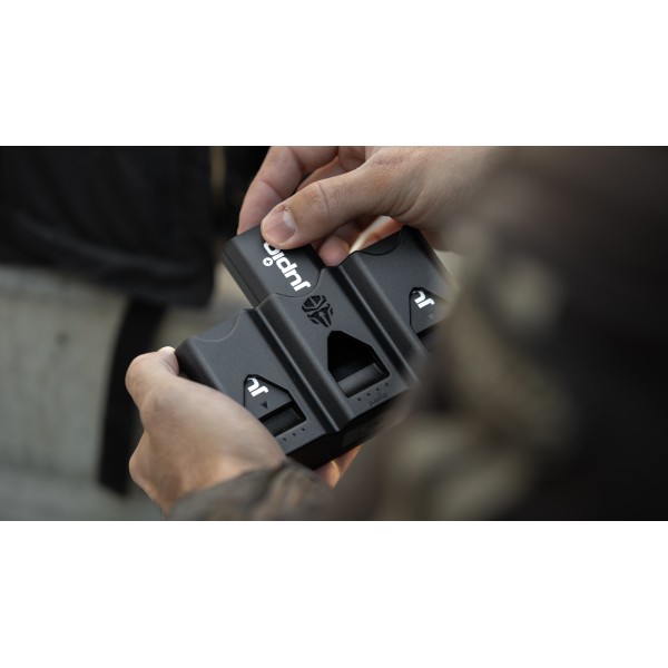 En collaboration avec Peter Lindgren, youtuber et photographe, Jupio a développé ce chargeur unique. Grâce à l'utilisation de matériaux haut de gamme, ce produit abrite et protège les batteries, les cartes mémoire(3x CFX, 3x SD et 2 microSD), le tout dans un boîtier robuste.